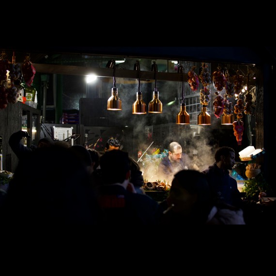 'In this image I used the lighting from the street stalls to place the man working into the light while casting shadows over the crowd surrounding him in order to highlight him within the photo.'